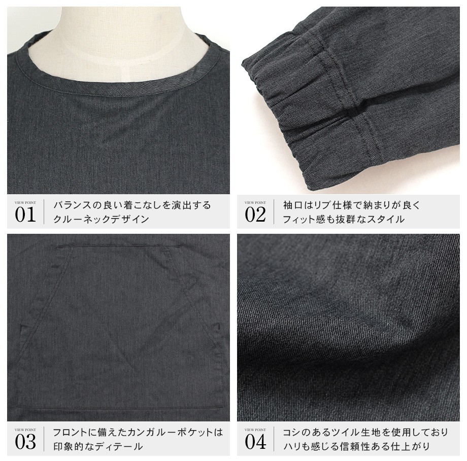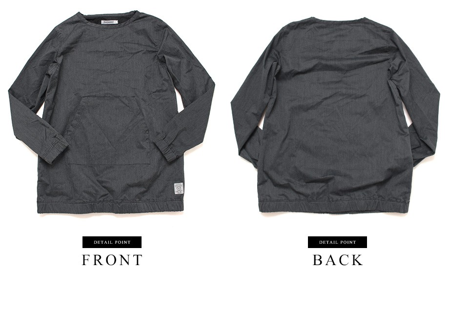 シンプルデザインながらトレンドの丈感で細部にこだわりを感じるプルオーバーシャツ。印象的な大振りのカンガルーポケットが存在感あるアイテム。ストレッチ性のあるツイル生地で着心地も快適な仕上がり。スタイリングしやすいデザインで長いシーズン着用出来るシャツになっております。