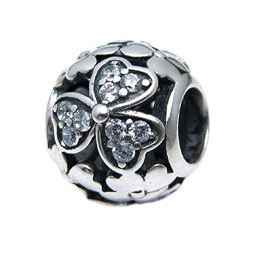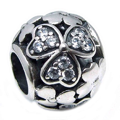 -. Title : Queenberry Sterling Silver Clover Flower with Cubic Zirconia Heart European Style Bead Charm