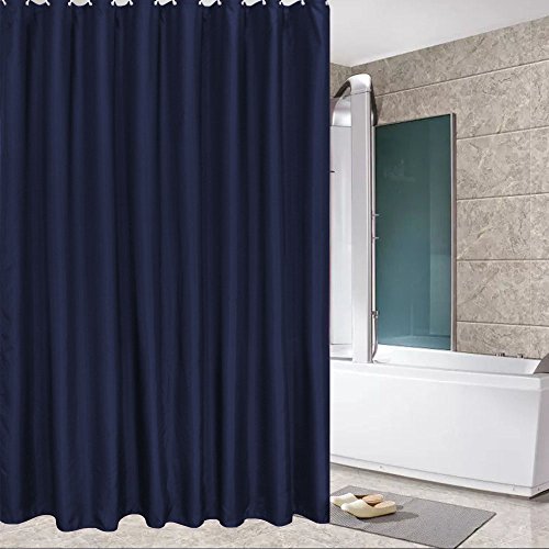 Eforcurtain Standard Size Solid Fabric Shower Curtain Mildew-resistant and Waterproof Shower Curtain Set with Plastic Hooks,72 By 72-inches, Navy Blue