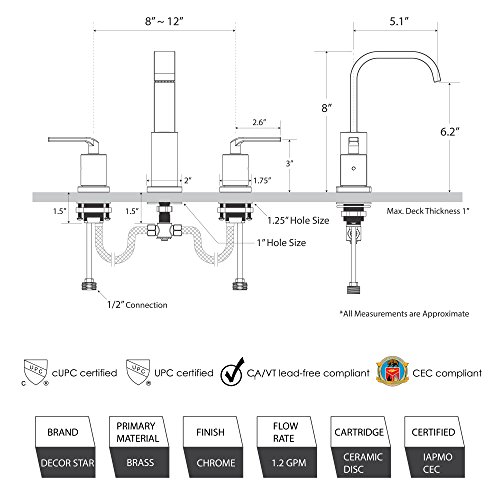 Decor Star WPC03-TC Contemporary Bathroom Vanity Sink Widespread Lavatory Faucet cUPC NSF AB 1953 Lead Free Chrome