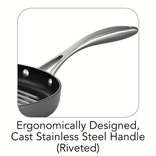 Heavy-Gauge aluminum construction in a beautiful, dark gray hard anodized finish has superior durability and provides even heat distribution
