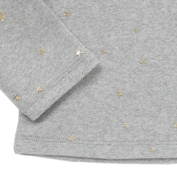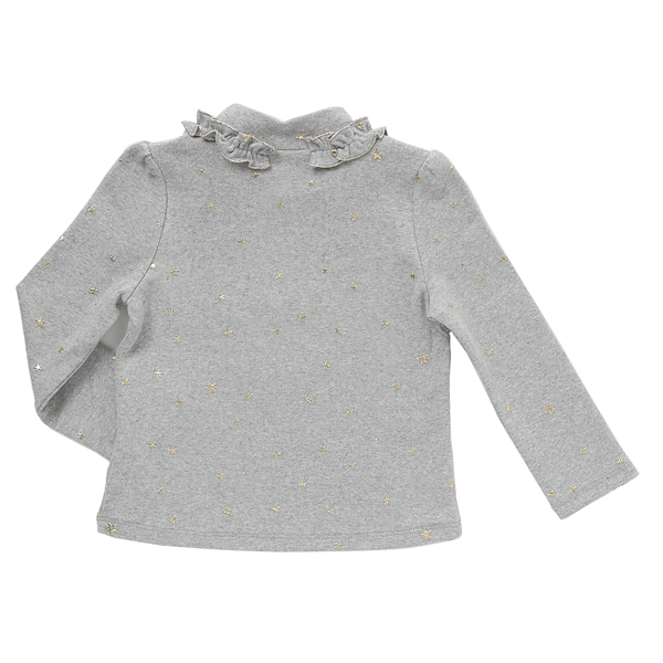 상품설명 그레이 골드별 반목 폴라티셔츠입니다. 슬림핏에 프릴장식과 화려한 별나염으로 포인트를 주었습니다.