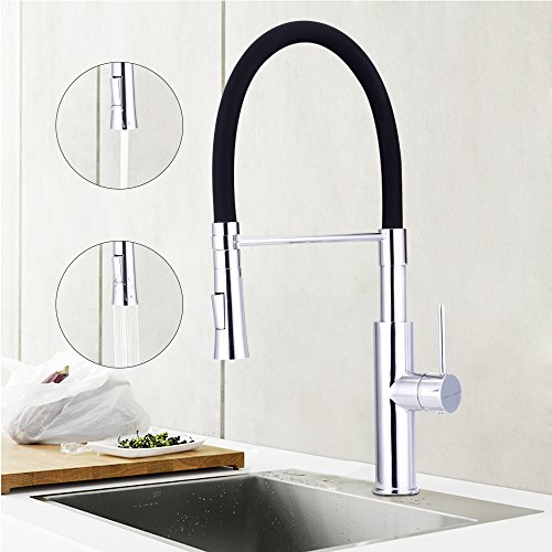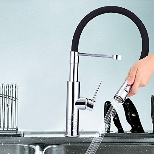 High arc sprayer and 360° swivel spout and pull-out rubber hose for different clearance modes. You can do the clearance at each sink as you need and you can also take it out for specific cleaning