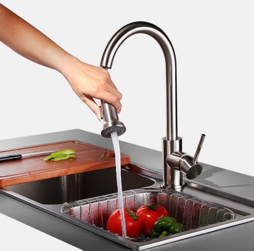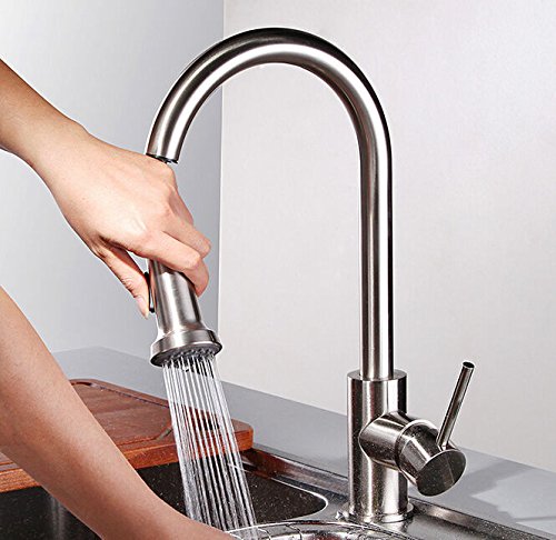 CRACCO SPA Single Handle Pull-Down Kitchen Faucet with Hot & Cold Hose,Lead Free Brass Matrial Chrome Finish