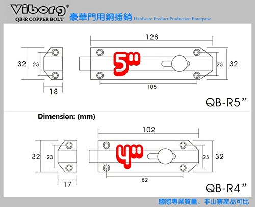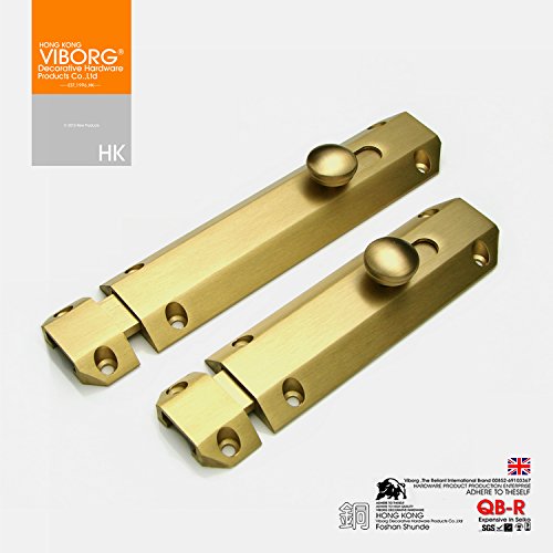 -. Brand : VIBORG-HK -. EAN : 0710373761346 -. Feature : Made of high quality brass, solid construction / With truly excellent BP finish--looks luxury and beautiful! / Screws of the same BP finish included -. Label : VIBORG-HK -. Manufacturer : VIBORG-HK -. Model : QB-R -. ProductGroup : Home Improvement -. ProductTypeName : HARDWARE -. Publisher : VIBORG-HK -. Size : 5 Inch -. Studio : VIBORG-HK -. Title : VIBORG-HK Luxury Brass Security Door Guard Surface Bolt Latch Slide Bolt Lock (5 inch) -. UPC : 710373761346