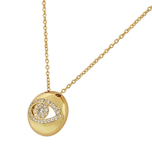 -. Binding : Jewelry -. Brand : Anguss Fashion Jewelry -. Department : girls -. Feature : Length (inches):18 / The pendant showcases an elegant design of the Hamsa charm set onto a delicate link chain and sparkling with gorgeous white CZ stones that decorate this unique pendant. The Hamsa charm on this necklace is believed to protect the wearer from bad luck. The necklace is crafted of yellow gold-toned sterling silver. -. Label : Anguss -. Manufacturer : Anguss -. Model : 271258140698 -. MPN : 271258140698 -. PartNumber : 271258140698 -. ProductGroup : Jewelry -. ProductTypeName : FASHIONNECKLACEBRACELETANKLET -. Publisher : Anguss -. Studio : Anguss -. Title : Gold Evil Eye Hamsa White Crystals CZ Pendant Necklace