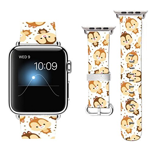 Apple Watch Band 42mm Premium Genuine Leather Strap Wrist Band w Metal Clasp for Apple Watch & Sport & Edition Lovely squirrel pattern-42mm