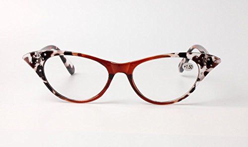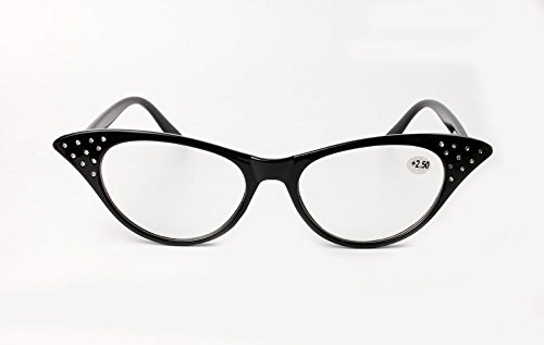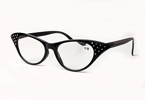 -. Title : SOOLALA Womens Fashion Designer Rhinestone Cat Eye Magnifying Reading Glasses