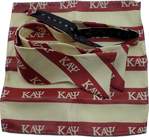 Product Description Kappa Alpha Psi Striped Mens Bow Tie Handkerchief Set. Handkerchief Size 8.75 x 8.5 in. Adjustable Size Bow Tie. This is a 100%, officially licensed product. 0