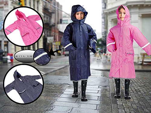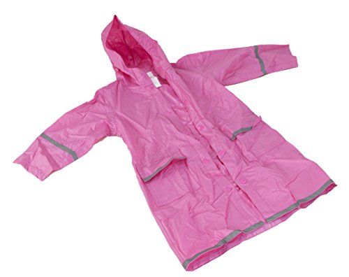 - Feature : 100 % vinyl material water-repellent rain rolls right off stay dry / Reflective stripes on back, sleeves and bottom for safety / Slips easily over clothing, Button snap closure / Includes hood for extra protection / Available sizes: Extra Small-4, Small-5-6, Medium-7-8, Large-10-12