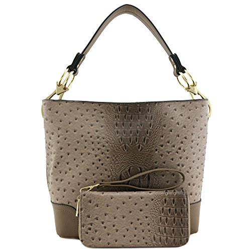 -. Title : 2 PC Set Ostrich Hobo Shoulder Bag with Big Snap Hook and Wallet