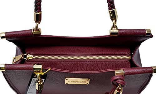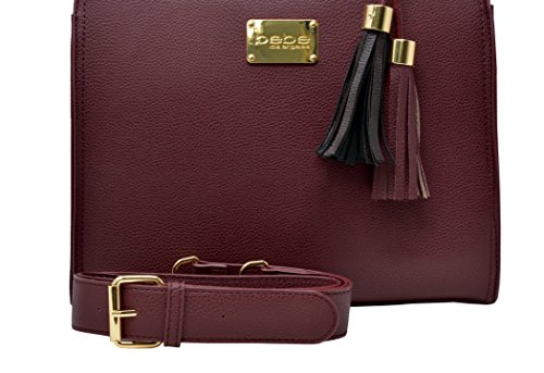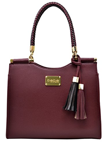 This authentic designer bebe bag features a chic and modern design that can easily go from day to night. Braided handles, goldtone hardware, fabric lining, and multi-toned tassels elevate the design of the bag while not forfeiting functionality and quality. The bag features one interior slip pocket and one zip wall pocket, as well as a removable and adjustable strap to convert the bag into a crossbody style tote.Feature