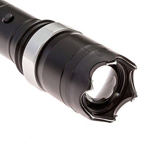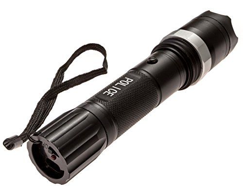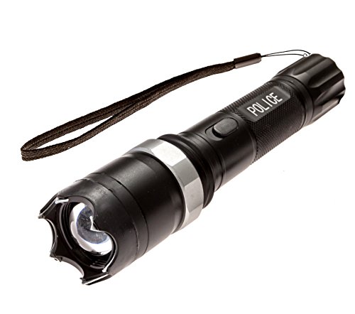 Police T10 - Max Voltage Metal Stun Gun - Rechargeable With 3 Light Modes Adjustable Focus LED Flashlight and Case