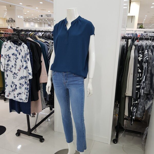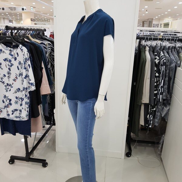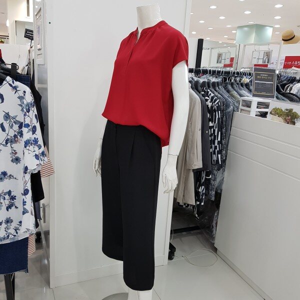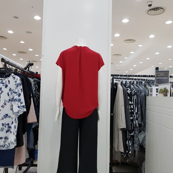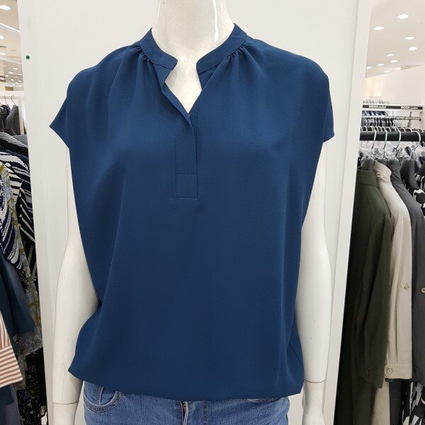 루즈한 가오리핏 실루엣의 민소매 블라우스로 셔링을 잡아 착용시 편안하게 입기 좋은 실루엣 입니다 기본 단정한 브이넥 디자인에 V자 트임을 주어 답답하지 않고 세련된 디테일로 디자인 하였습니다 소매도 어깨와 팔을 살짝 덮어주어 부담스럽지 않은 민소매 블라우스 입니다