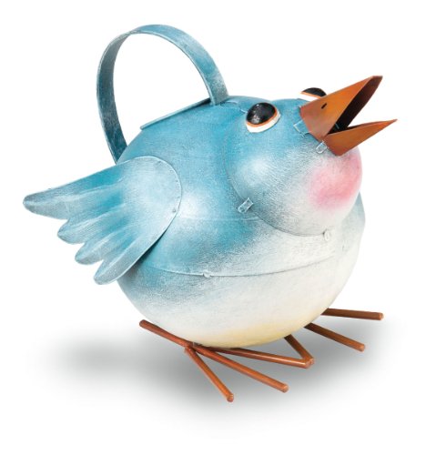 Blue Bird Antiqued/Rustic Metal Watering Can - 10.5" Long and 8" Tall