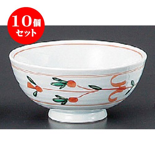 원본상품명: 10個セット 飯碗(磁器)?化 赤?花飯碗 [113 x 53mm] ?化 和食器 料亭 旅館 ?食店 業務用
