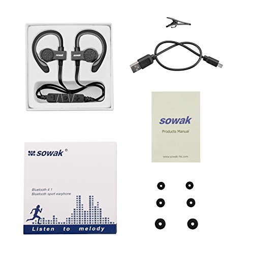 -. Binding : Wireless Phone Accessory -. Brand : SOWAK -. EAN : 0648273986159 -. Feature : BLUETOOTH V4.1 WIRELESS TECHNOLOGY WITH CVC 6.0 NOISE SUPPRESSION TECHNOLOGY - Built-in ceramic antenna provide stable and seamless connectivity with bluetooth enabled devices up to 30 feet away. with noise isolation technology, focus on your favorite music and answer calls without skips or missed words. / LONGEST BATTERY LIFE - The new and improved lithium polymer battery allows seamless enjoyment of music for up to 6 hours and 220 hours stand-by with a quick charge of only 2 hours / Waterproof - Run in the rain or sweat it out in the gym. IPX4 water-resistant shell and internal nano-coating provide a double layer of water protection. / Movement design -Lightweight design with customizable EarTips and InEar-Hooks give anyone a strong and comfortable fit. / SERVICE--Our worry-free 12-month warranty and friendly customer service. -. Label : SOWAK -. Manufacturer : SOWAK -. Model : Q7 -. MPN : Q7 -. PackageQuantity : 1 -. PartNumber : Q7 -. ProductGroup : Wireless -. ProductTypeName : WIRELESS_ACCESSORY -. Publisher : SOWAK -. Studio : SOWAK -. Title : Sowak Bluetooth Headset, Bluetooth V4.1 Wireless Earphone Noise Cancelling Bluetooth Headphones Gym Stereo With Mic Sweatproof Headset For Iphone, Samsung And Android Phones -. UPC : 648273986159