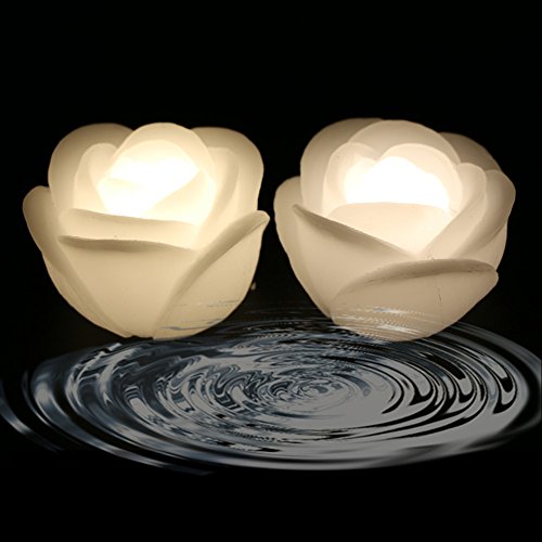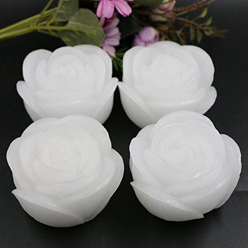 Acmee (Pack of 4) Warm White Color Flameless Wax LED Water Floating Rose Candle Light for Wedding or Event Decoration./LED Floating Candle Light in Flower shape (Warm white)