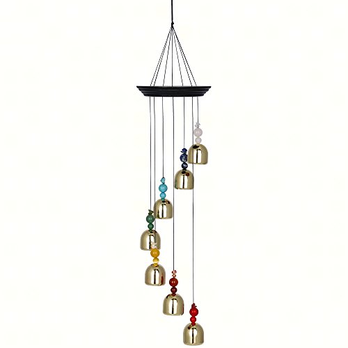 - Each wind chime features 7 brass plated Chakra bells with accent stones, as well as black finished pine wood.