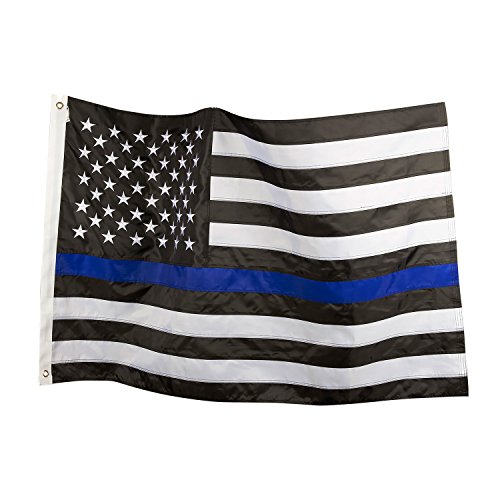 Juvale Thin Blue Line Flag With 2 Metal Grommets and Embroidered Stars For Outdoor Events and Indoor Display (36.5 x 60 inches)