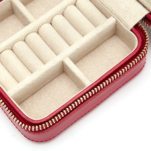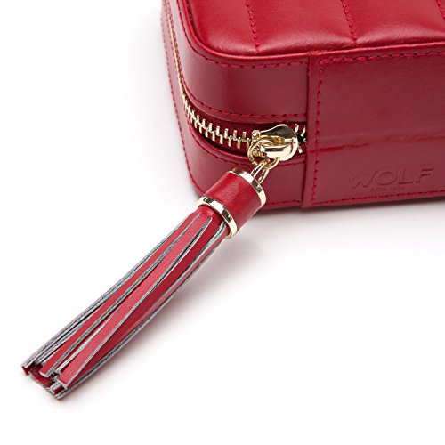 Signature WOLF jewelry travel case - quilted leather exterior, gold finished hardware, glass mirror and tassel