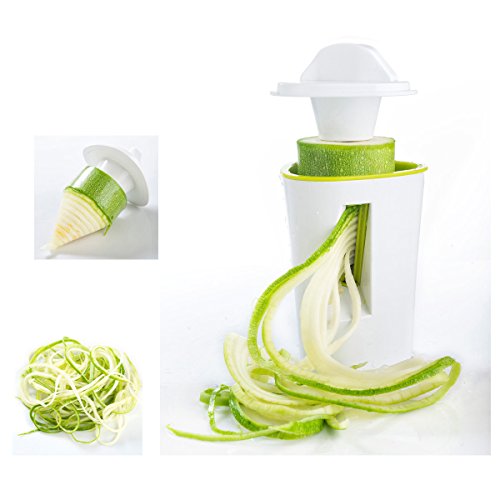 - Spiralizer vegetable slicer is built in three stainless steel blades. Features spaghetti cut (1/8-in), fettuccine cut (1/4-in) and ribbon cut blades. The Spiralizer is includes a built in finger-guard for further protection.