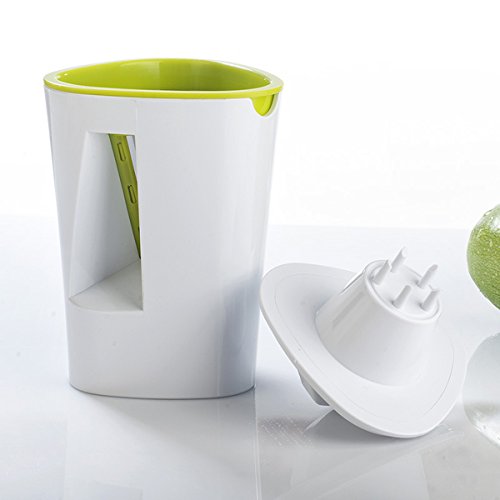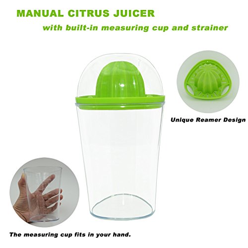 - Unique reamer design makes juicing more efficient and easier. The built in strainer will catches seeds and pulp. Coming with a 15 oz measuring cup can be used to storage juice and foods.