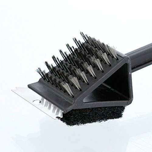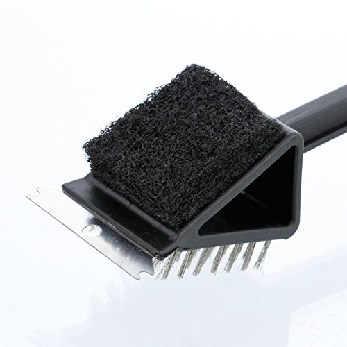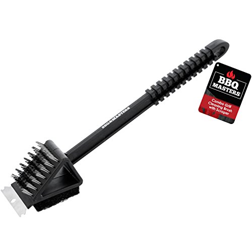 BBQ Masters 14" Combo Grill Cleaning Brush with Stainless Steel Cleaning Bristles, Scrubbing Pad and Scraper Blade