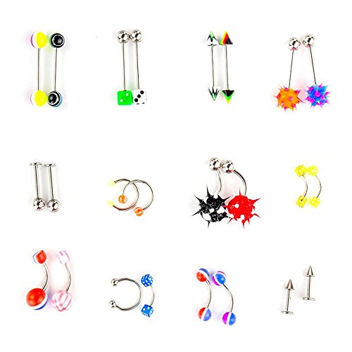 -. Feature : There are 22 styles totally 110pcs rings. You can use them to your lips, tongue, navel, eyebrows and noses. / Classic elegant and simple design, high quality, perfect girly gift / Notice: Sterilize the stainless bar only, the ball should be washed with water! / Marterial: 16L surgical stainless steel & acrylic / 100% brand new and high quality, unopened and undamaged, we use USPS as our defaunlt shipper, delivery(7-15) days average, with USPS tracking number!