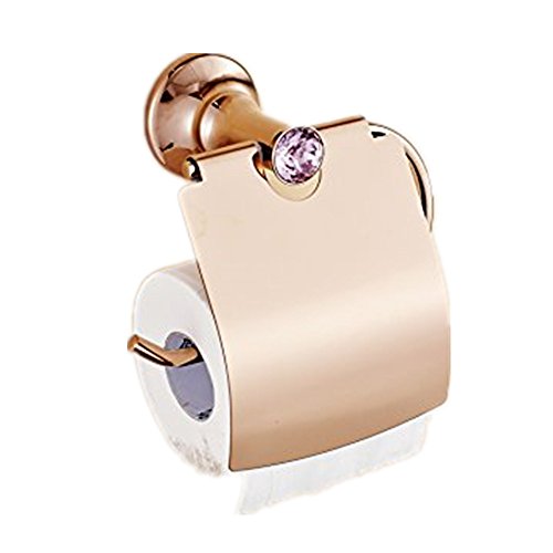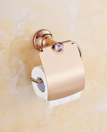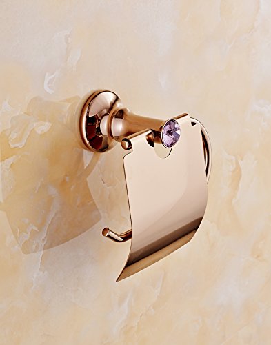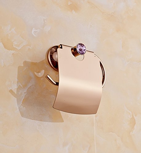 AUSWIND Contemporary Rose Gold Polished Purple Crystal Solid Brass Toilet paper holder Wall Mounted Bathroom Accessories