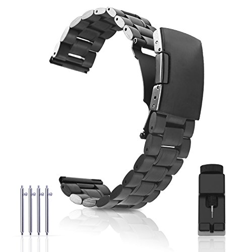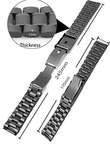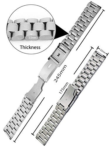 -. Feature : Band width: 22mm; Length: 175mm; Thickness: 3.5mm / Premium Quality- Made from premium-quality 304 stainless steel ensuring its toughness and durability in use. Silver polished surface brings you a strong sense of high-class quality and elegance. Extremely flexible links is connected steadily, worries free from the links falling off. / Adjustable Length -- The watchband's length is adjustable from 125mm to 175mm (3 links can be removed at each side). It is of great convenience for you to click the button to open the clasp. / Suitable For Watches -- [For Moto 360 2nd Gen 46mm 2015] [For Pebble Time/ Pebble Time Steel/ Pebble Classic] [For LG G Watch W100/Urbane W150/ R W110 ] [For Samsung Gear 2 R380/ Neo R381/ Live R382] [For Seiko SKX007 ] [For Vostok Amphibian ] [For Cookoo Smart Watch ] [For Fossil Q Founder, Fossil Q Grant ] [For Martian Notifier Smart Watch] [For Vector Luna, Vector Meridian] [For Basis Peak Fitness Tracker Watch] / Package - Including a piece of watchband, a piece of sP.R.Ing bar tool and 4 pieces of pins.