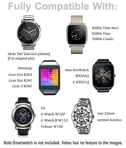 -. Title : Vetoo 304 Stainless Steel 22mm Watch Bands for Moto 360 2nd Gen 46mm,Pebble Time,Time Steel,Classic,ASUS ZenWatch WI500Q,WI501Q,Samsung Gear 2 R380,Neo R381,Live R382,LG G Watch W100,Urbane,R(Black)