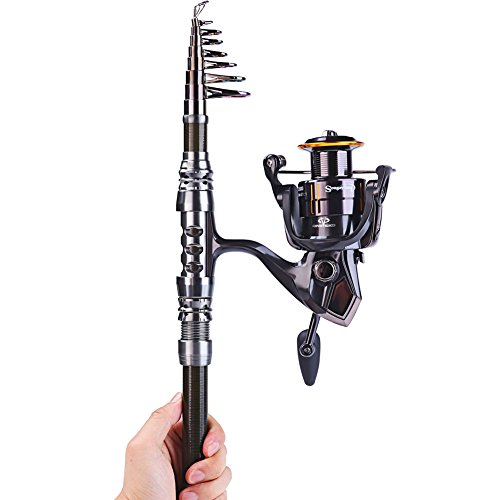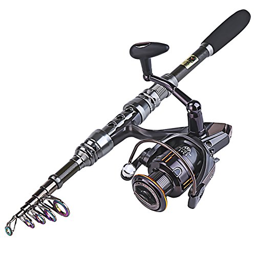Perfect elasticity, high density Carbon fiber mixed with fiberglass make your fishing pole hard & durable. Stainless Steel Hooded Reel Seats is anti-seawater corrosion; EVA Fore Grip for comfort. The telescopic fishing rod is portable, and closed length design is convenient carrying around. Power: Medium.