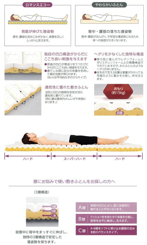 | 適度な硬さの違いであなたの体をしっかりサポート。腰背部を受け止める部分に、特に硬めのスーパーハードウレタンフォームを使用しているため、もっとも体圧のかかる臀部の沈み込みを防ぎます。 |
