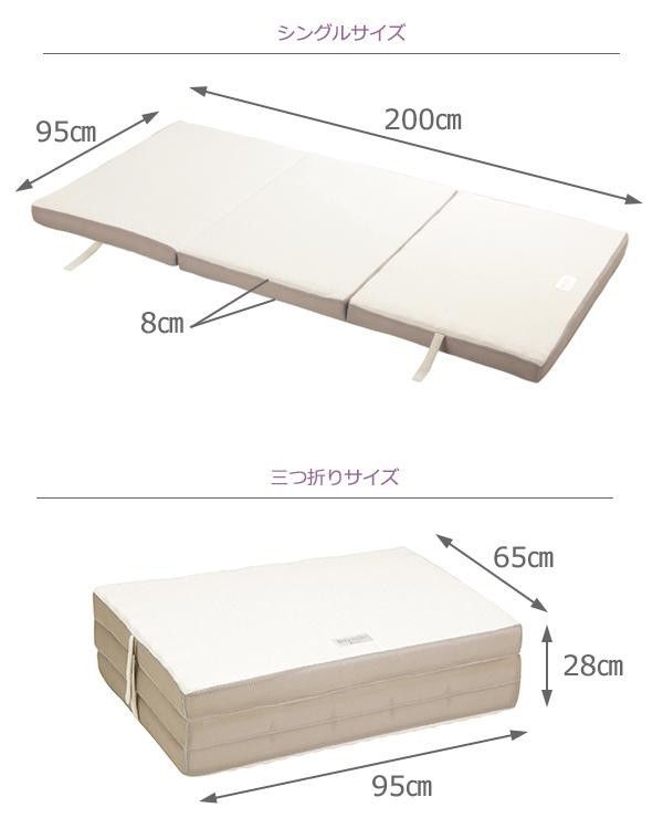 | サイズ | 95×200×8cm、収納時(三つ折り):95×65×28cm 個装サイズ:98×68×27cm |