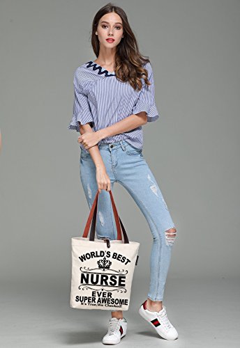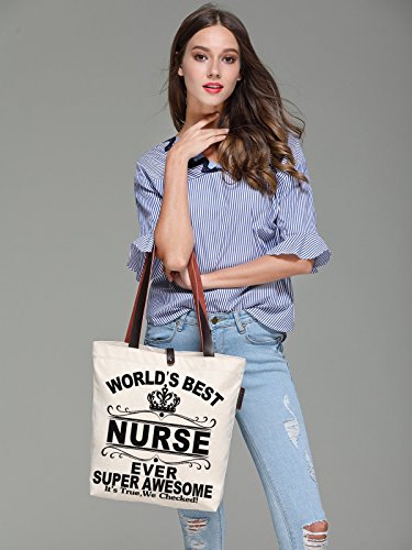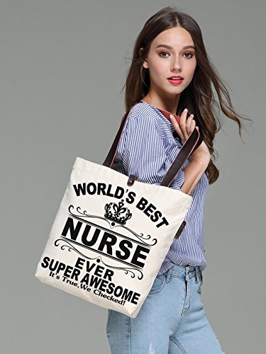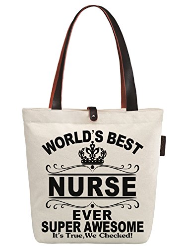 So'each Women's World's Best Nurse Ever Graphic Canvas Handbag Tote Shoulder Bag