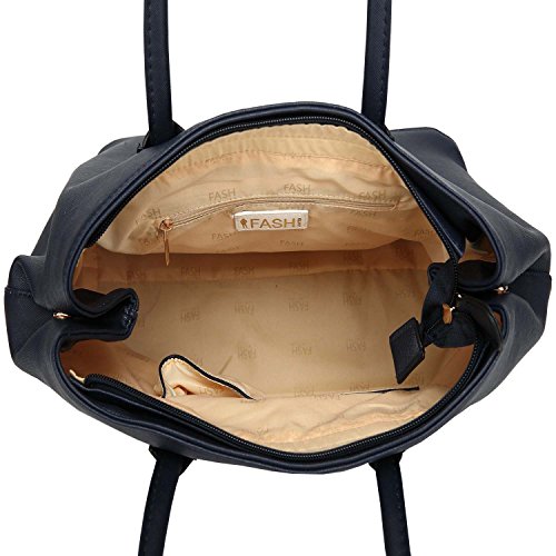 Take a look at this amazing Tote Handbag by FASH. It's exterior is made using top quality man-made leather and it has a crosshatched texture all over it, giving it a sophisticated look. What's truly amazing about this handbag is its dual rolled handles which which comes with a band around it keeping them together. This leaves you with two interesting options of carrying it. We understand that comfortably in carrying a handbag plays an important role and hence we've designed our handbag in this manner.