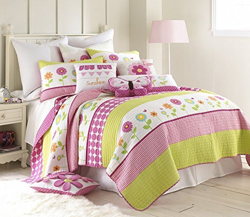 Julia Floral & Butterfly Girls Pink & Lime Green Cotton Twin Quilt