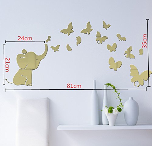 Alrens(TM) Cute Elephant Butterflies Acrylic Mirror Surface DIY 3D Wall Sticker Baby's Room Nursery Decor Creative Mural Decal Art Home Decoration Gift for Kids