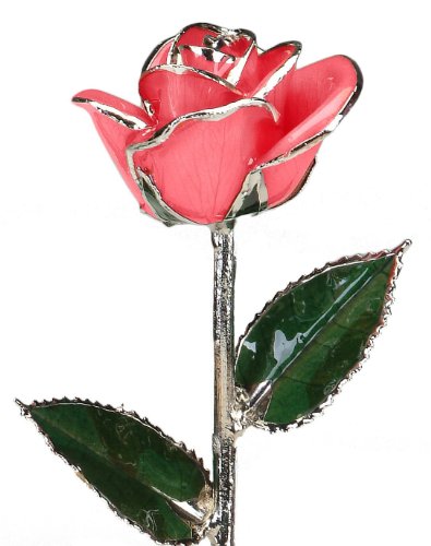 Pink Laquered Platinum Dipped Long Stem Genuine Rose In Red Gift Box