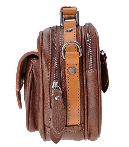 - This satchel is made of genuine cow leather with brass hardware, high quality. Each piece is unique. Two main compartments with zipped closures. One magnetic snap front pocket. One exterior back pocket with zipped closure. And also with removable shoulder straps. It can fit your cell phone, purse, key, make up and daily thing.