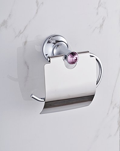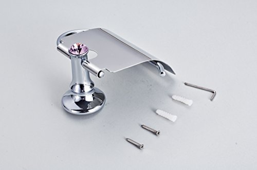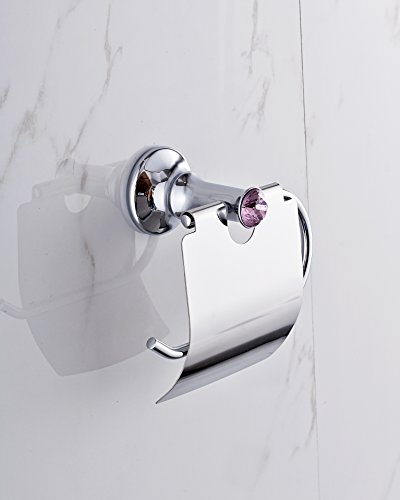 AUSWIND Contemporary Silver Solid Brass Polished Purple Diamond Toilet paper holder Wall Mounted Bathroom Accessories