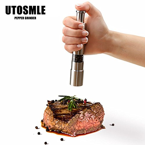 UTOSMILE Pepper Grinder Stainless Steel Table Seasoning Grinders with One-handed Push Mill Shaker for Peppercorns Sea Salt Spices