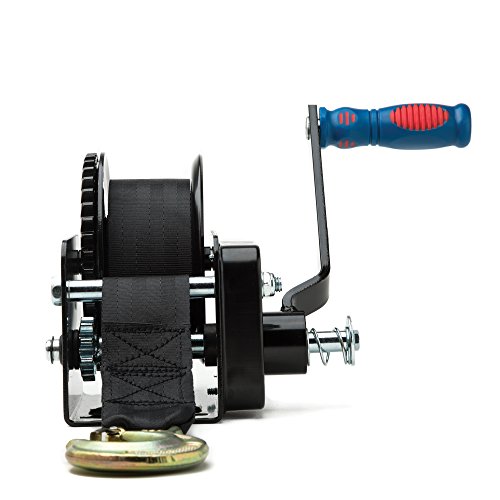 TR Industrial 1600 lb. Trailer Winch with Brake, Pre-Installed 20 ft Strap and Hook