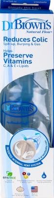 -. Feature : Dr. Browns bottles feature a patented two-piece internal vent system that works unlike any other bottle design. / As the baby feeds, air is channeled from the nipple collar through the vent system, bypassing the breastmilk or formula, to the back of the bottle. / Air never mixes with the breastmilk or formula which minimizes oxidation and helps maintain essential nutrients like vitamins C, A and E. / 8 oz. Standard Polypropylene Bottle with Level 1 nipple, 3 pack, INDIVIDUALLY PACKAGED