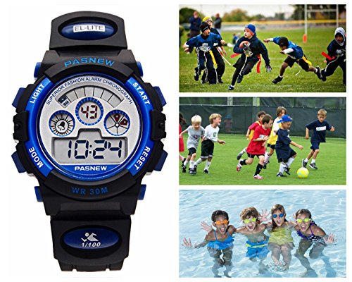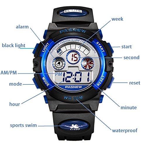Design Calendar Date Window, Alarm, 30M Waterproof, 12/24 hour format, EL Back Light Display, Shock Resistant, Stopwatch,digital display, provide precise and accurate time keeping for boys or girls