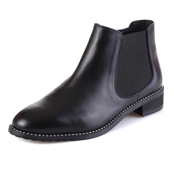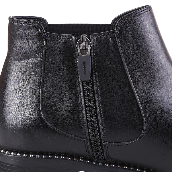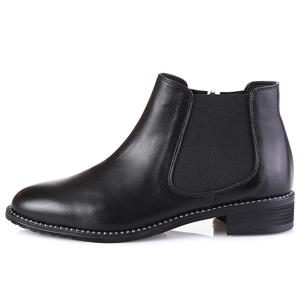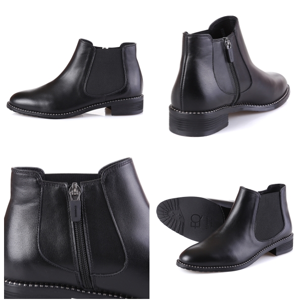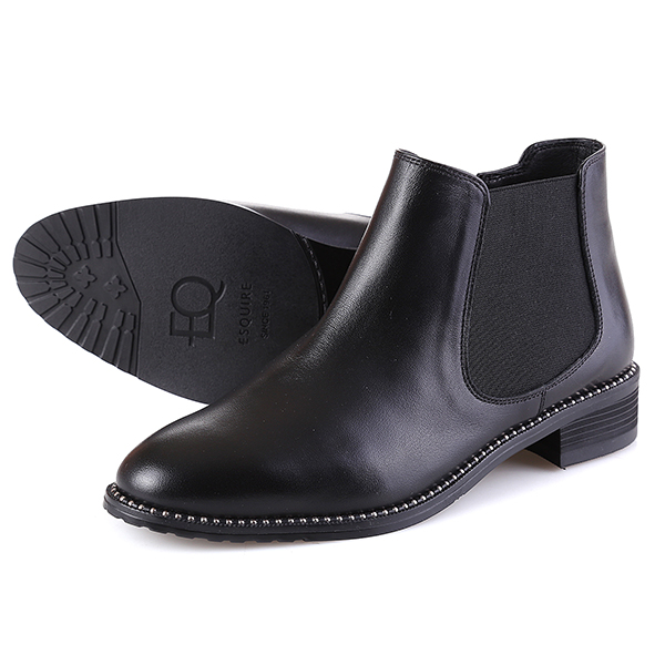 심플한 블랙과 E밴드를 디자인적인 요소로 활용하고 안쪽에 지퍼를 적용하여 편리성을 높인 첼시부츠.