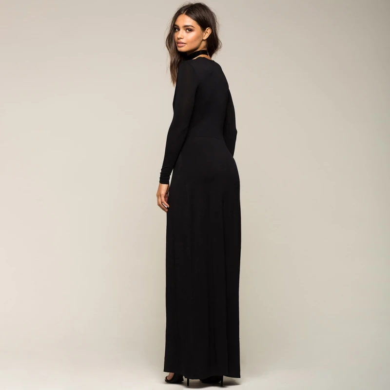 HDY Haoduoyi Fashion Knitted Maxi Dress Women Long Sleeve Female Straight Dress Sexy Deep V-neck Solid Black Casual Dress | |||||||||||||||||||||||||||||||||||||||