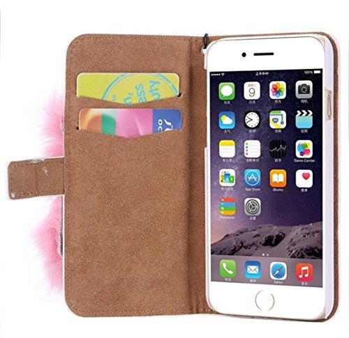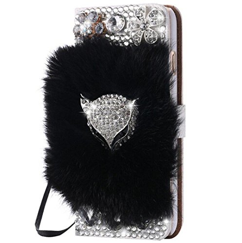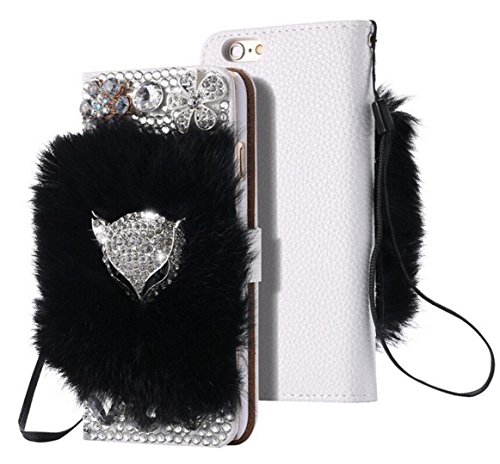 Spritech(TM) Handmade Plush Bling Sparkly Crystal Diamond Fox Head Glitter Flower Card Holder Leather Wallet Flip Case for iPhone 6 Plus/6S Plus 5.5 inch