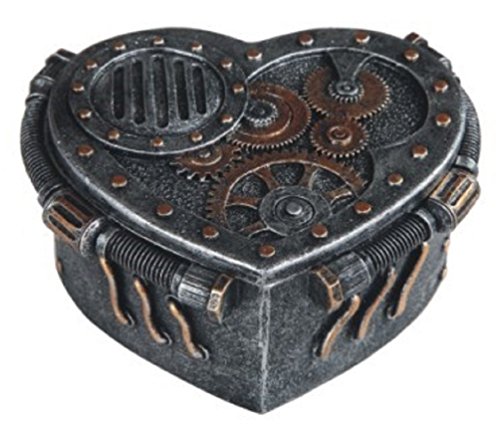 Product Description This gorgeous steampunk silver heart shaped box has the finest details and highest quality you will find anywhere. The craftsmanship of this intricate steampunk silver heart shaped box is truly remarkable. 0